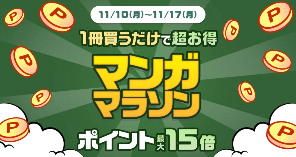 マンガマラソンは、毎月中旬ごろにポイント最大15〜25%還元されるキャンペーン。